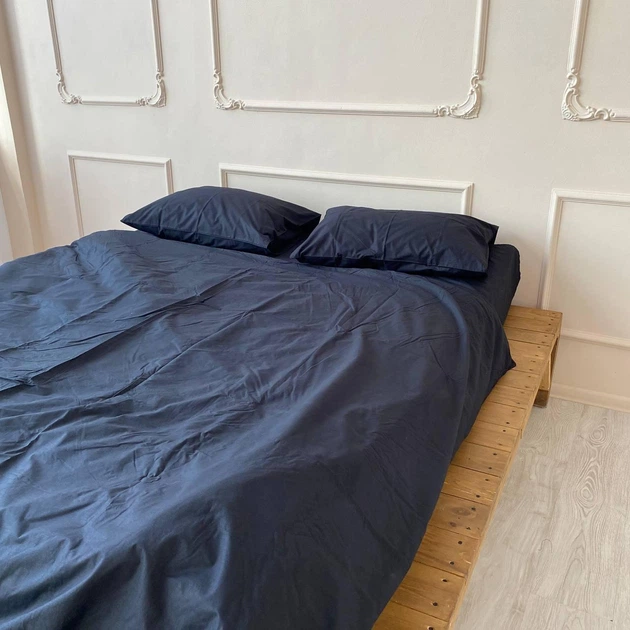 Постільна білизна Синій + чорний, ранфорс Евро розмір, наволочки 50/70