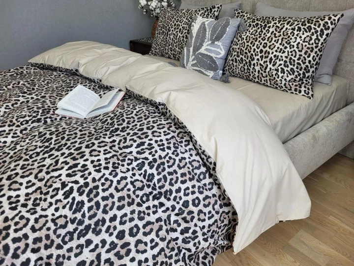 Постільна білизна Леопард, ранфорс Евро розмір, наволочки 50/70