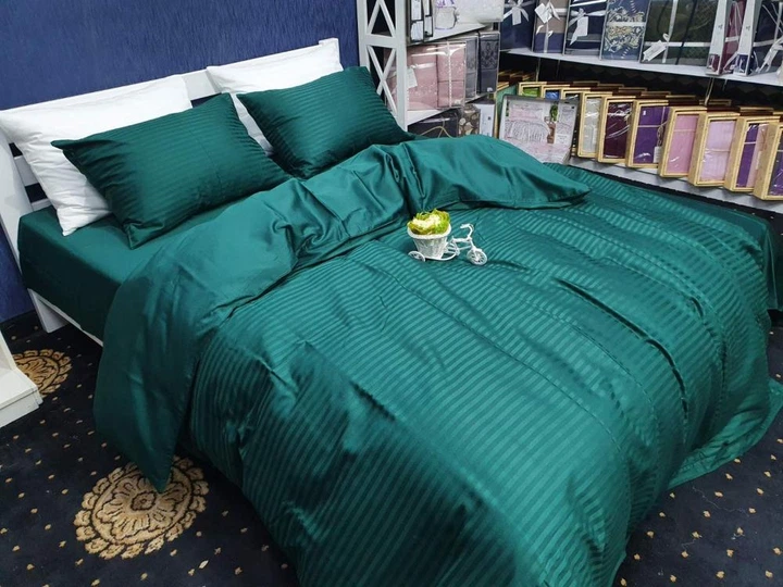 Постільна білизна DEEP EMERALD страйп + однотонний сатин Двухспальний розмір, наволочки 50/70