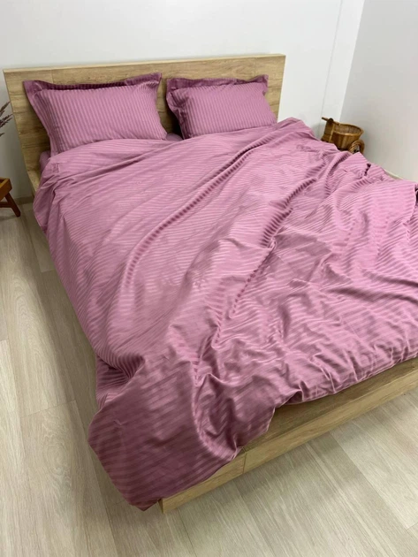 Комплект постільної білизни Страйп-сатин Luxe сімейний 150х210 (2 шт) простирадло на гумці 200х200х20 наволочки 70х70 виногр