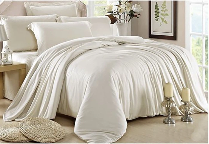 Комплект постільної білизни MERISET 120090142 Двоспальний на резинці Сатин однотон Молочний