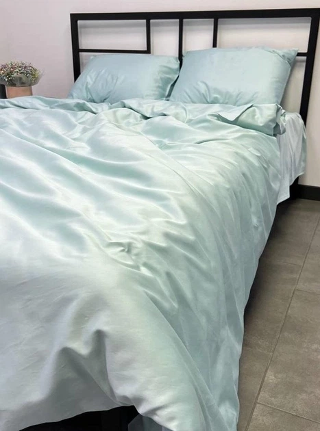 Комплект постільної білизни Сатин Luxe сімейний 150х210 (2 шт) простирадло на гумці 200х200х20 наволочки 70х70 м'ята
