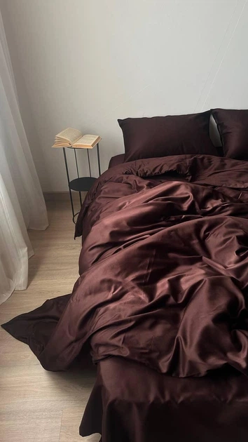 Постільна білизна з резинкою Шоколад півтораспальний розмір 145х215 см, турецький сатин преміум, 100 бавовна, наволочки 70х7