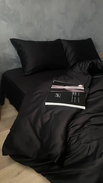 Постільна білизна з резинкою Чорна півтораспальний розмір 145х215 см, турецький сатин преміум, 100 бавовна, наволочки 50х70
