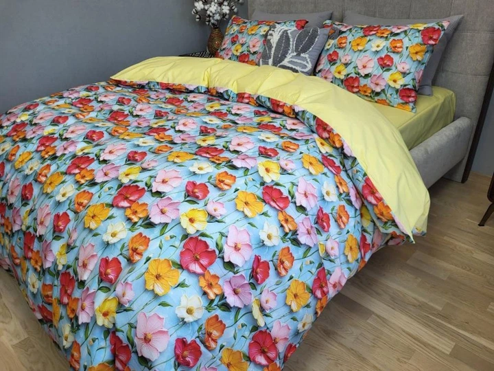 Постільна білизна з резинкою Іріс, ранфорс гофра (жатка) Евро розмір, наволочки 50/70