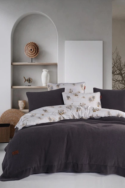 Зимовий односпальний комплект Istanbul Sherwood Antracite (Фланель + Шерпа)