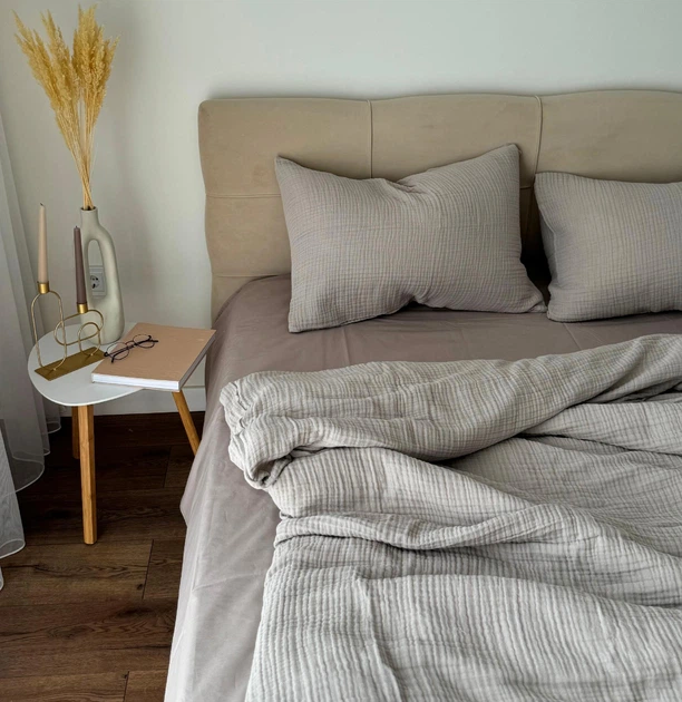 Комплект з преміального 4-х шарового мусліну LavSon Півтораспальний Євро 160х220 простирадло 200х230 ранфорс Мигдаль