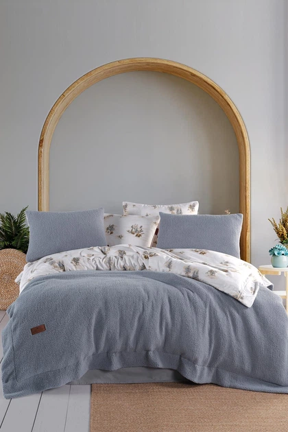 Зимовий односпальний комплект Istanbul Sherwood Mavi (Фланель + Шерпа)