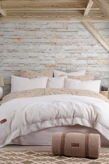 Зимовий односпальний комплект Istanbul Sherwood Ecru (Фланель + Шерпа)