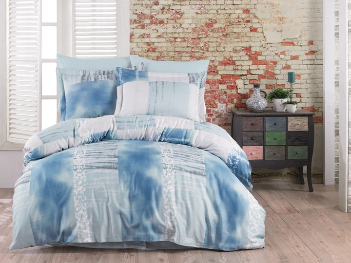 Комплект постільної білизни Bahar Textile 70078386 евро Сатин, 100 хлопок Синий