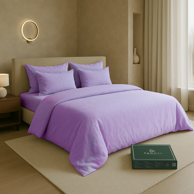 Комплект постільної білизни варена бавовна PAGOTI Natura ліловий (двоспальний/4*50х70 см)