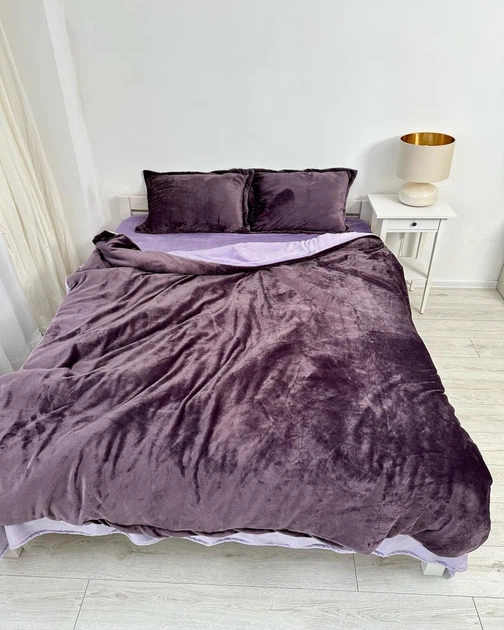 Постільна білизна плюшева євро Dushka Home 20830 200х220 см бузкова з лавандовою