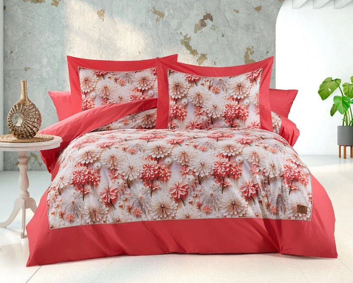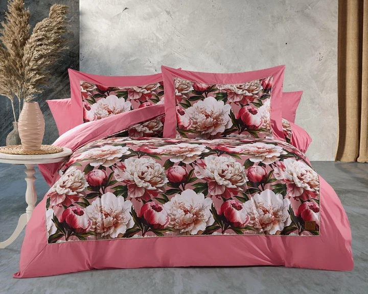 Комплект постільної білизни Romeo home Rune 5D з попліну в євро розмірі 4 наволочки рожевий з квітами 0001700