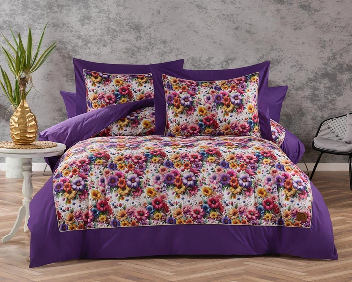 Комплект постільної білизни Romeo home Fett 5D з попліну в євро розмірі 4 наволочки фіолетовий 00011000