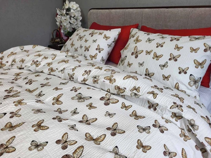 Постільна білизна з резинкою Політ, ранфорс гофра (жатка) Полуторний розмір, наволочки 50/70