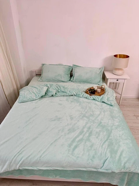Постільна білизна плюшева однотонна Мятна, сімейний розмір 160х215см х2шт, наволочки 50х70