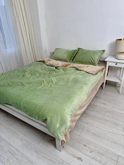 Постільна білизна плюшева однотонна Оливка + беж, сімейний розмір 160х215см х2шт, наволочки 70х70
