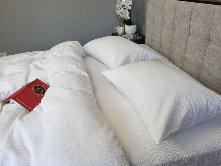 Постільна білизна з резинкою Білий, ранфорс гофра (жатка) Евро розмір, наволочки 70/70