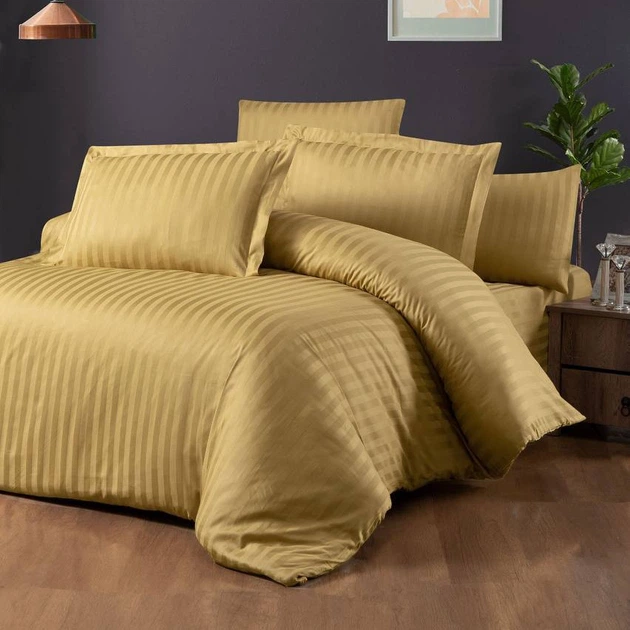 Комплект постільної білизни MERISET 120090643 Сімейний на резинці Сатин страйп Жовтий