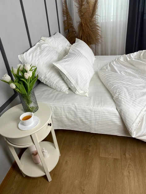 Комплект постільної білизни Страйп Сатин Premium айворі двоспальний 180х215 см