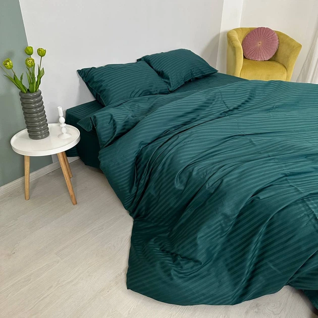 Комплект постільної білизни Страйп Сатин Premium смарагд двоспальний 180х215 см