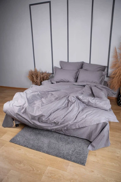Комплект постільної білизни Страйп Сатин Premium антрацит двоспальний 180х215 см