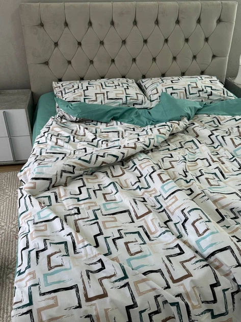 Комплект постільної білизни Ранфорс Premium mint/white Сімейний 150х210 см (2шт)
