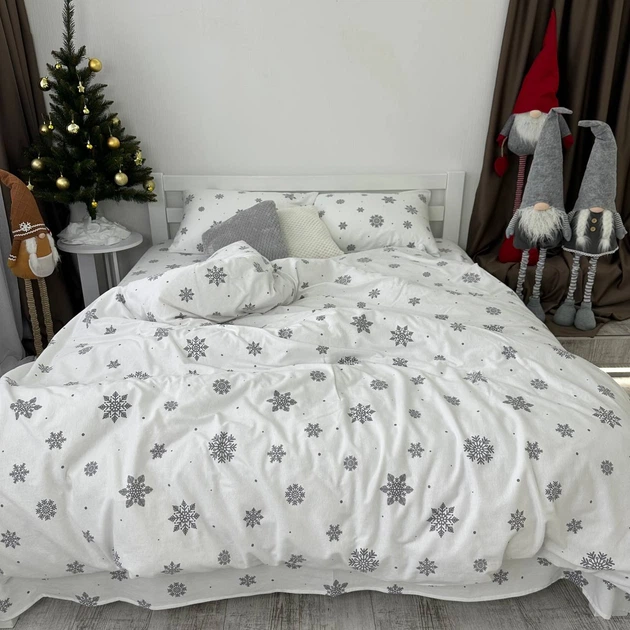 Комплект постільної білизни Фланель Сніжинки Сімейний 150х210 см (2шт)