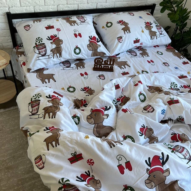 Комплект постільної білизни Ell Home (турецька фланель) Гостинці СІМЕЙНИЙ на резинці 160/200/25