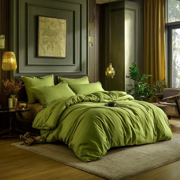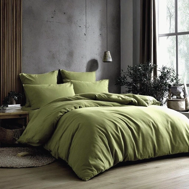 Комплект постільної білизни Almira Mix Варена Бавовна Преміум Олива Євро