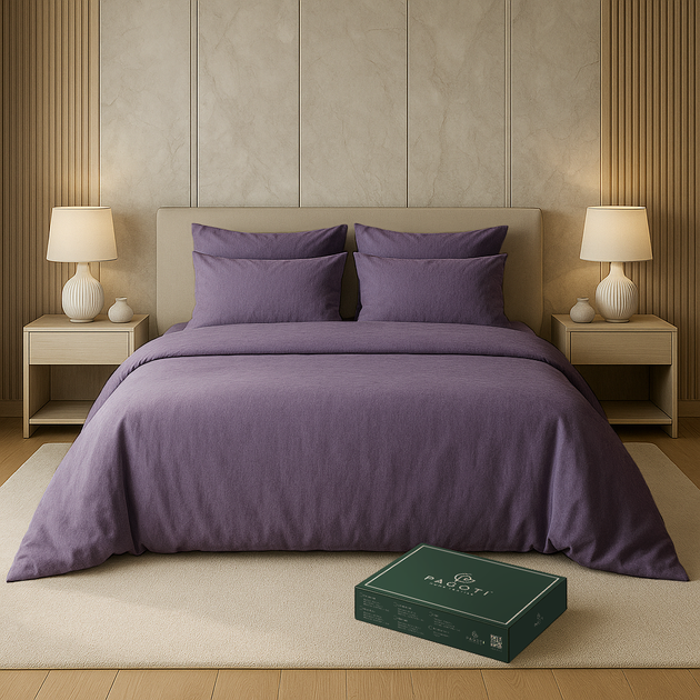 Комплект постільної білизни варена бавовна PAGOTI Natura ліловий (двоспальний/2*70х70 см)