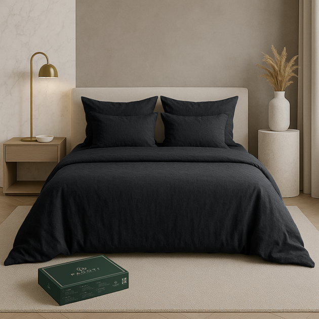 Комплект постільної білизни варена бавовна PAGOTI Natura чорний (двоспальний/2*70х70 см)