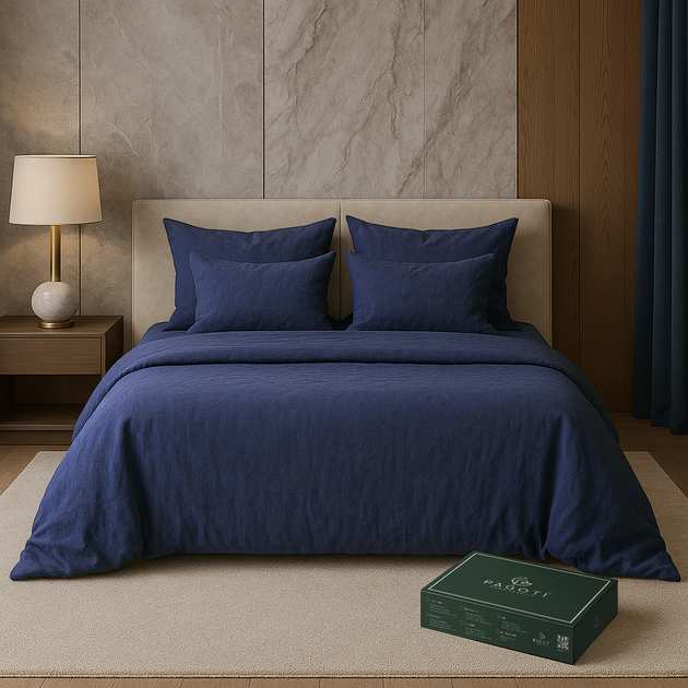 Комплект постільної білизни варена бавовна PAGOTI Natura синій (двоспальний/2*70х70 см)