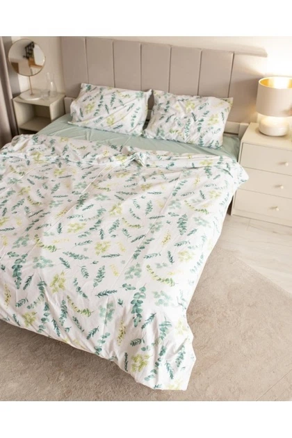 Постільна білизна з резинкою Листочок ранфорс Сімейний розмір, наволочки 50/70