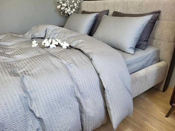 Постільна білизна з резинкою Сірий, сатин GOFRE PREMIUM Евро розмір, наволочки 70/70
