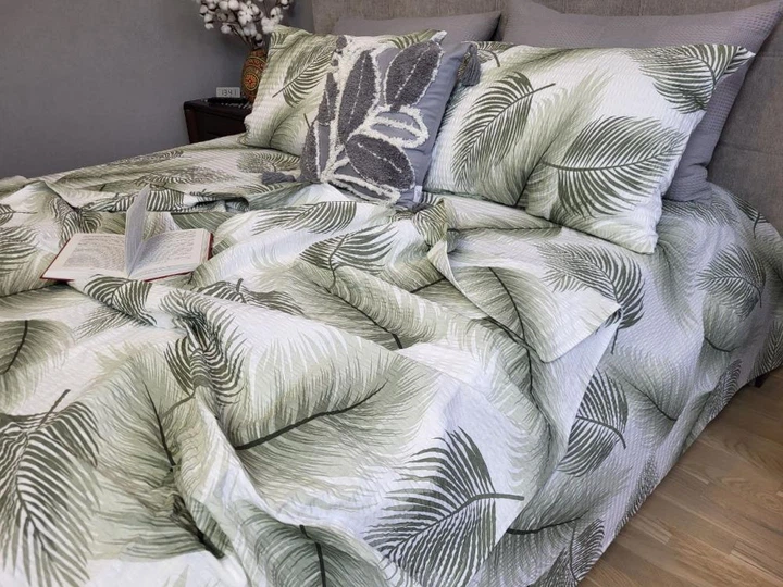 Постільна білизна з резинкою Карамелька оливк., ранфорс гофра (жатка) Сімейний розмір, наволочки 70/70