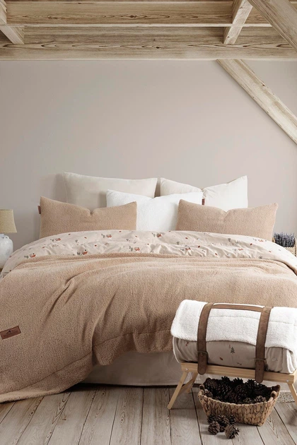 Зимовий євро комплект Istanbul Sherwood Ecru (Фланель + Шерпа)