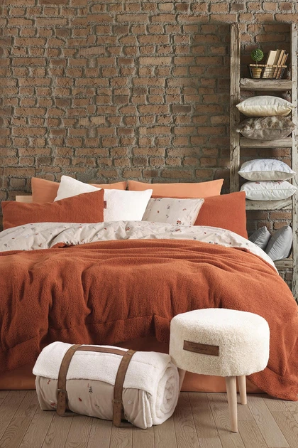 Зимовий євро комплект Istanbul Sherwood Kiremit (Фланель + Шерпа)
