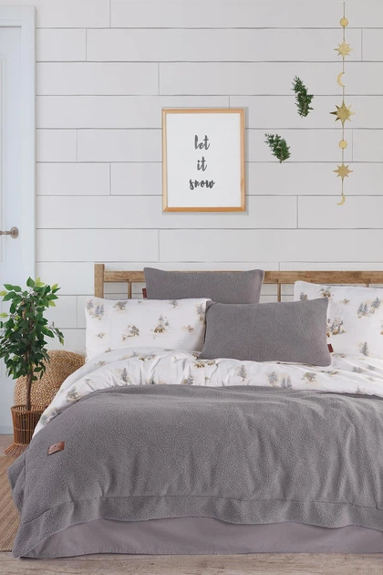 Зимовий євро комплект Istanbul Sherwood Grey (Фланель + Шерпа)