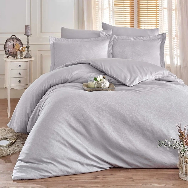Комплект постільної білизни MERISET 120091566 Полуторний на резинці Сатин Жакард Сірий