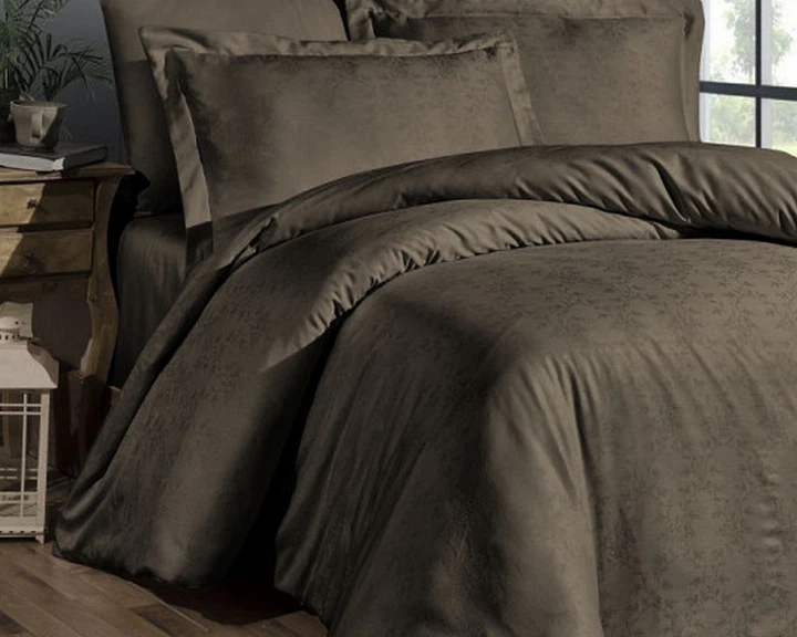 Турецька постільна білизна First Choice сатин-жаккард Amore Brown євро