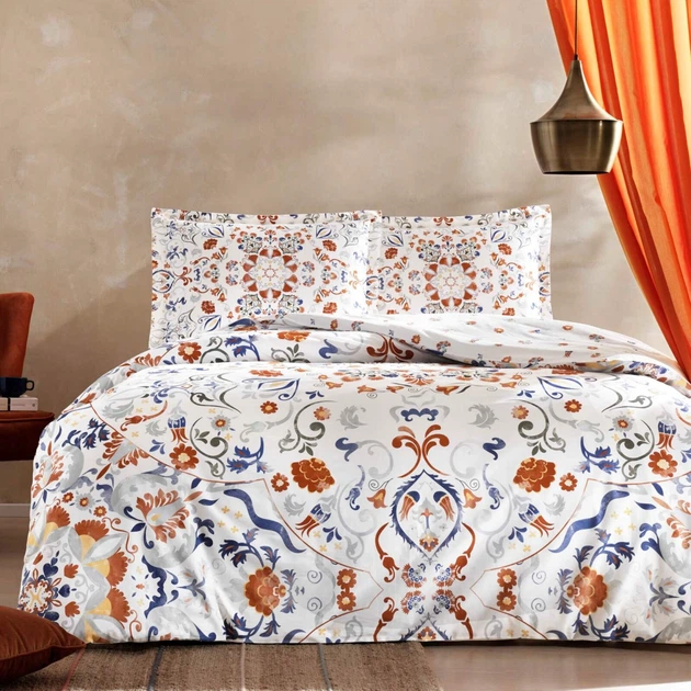 Двоспальний Євро комплект TAC Evander Turuncu Сатин