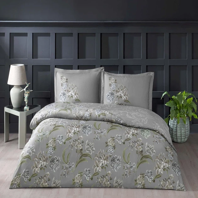 Двоспальний Євро комплект TAC Elodie Grey Сатин