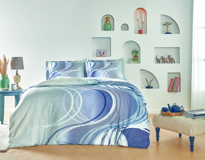 Двоспальний Євро комплект TAC Serenya Blue Сатин