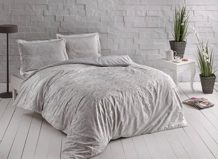 Двоспальний євро комплект TAC Zaira Grey Сатин