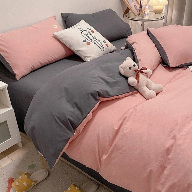 Постільна білизна MERISET ДУЕТ Персик/Антрацит Поплін Сімейна на резинці