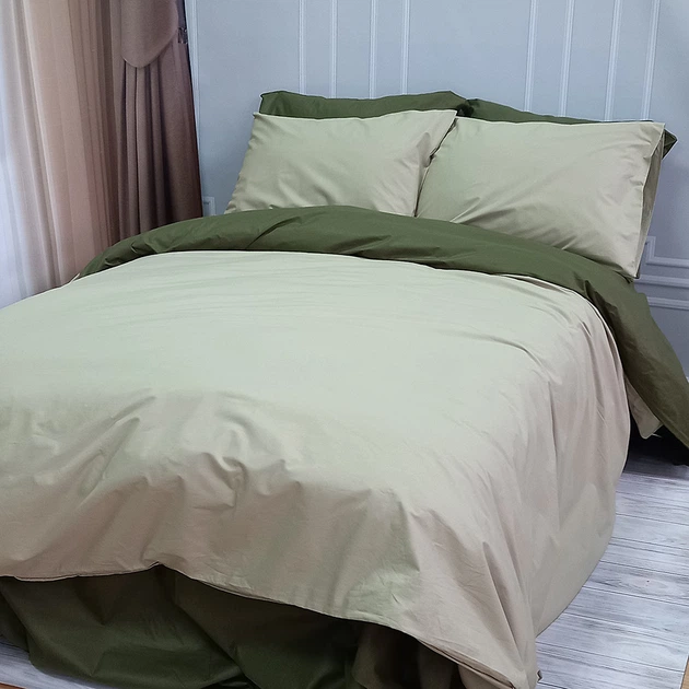Постільна білизна MERISET ДУЕТ Світла оливка Темний Хакі Ранфорс Двостороннє Сімейний комплект на гумці 180х200х25 см