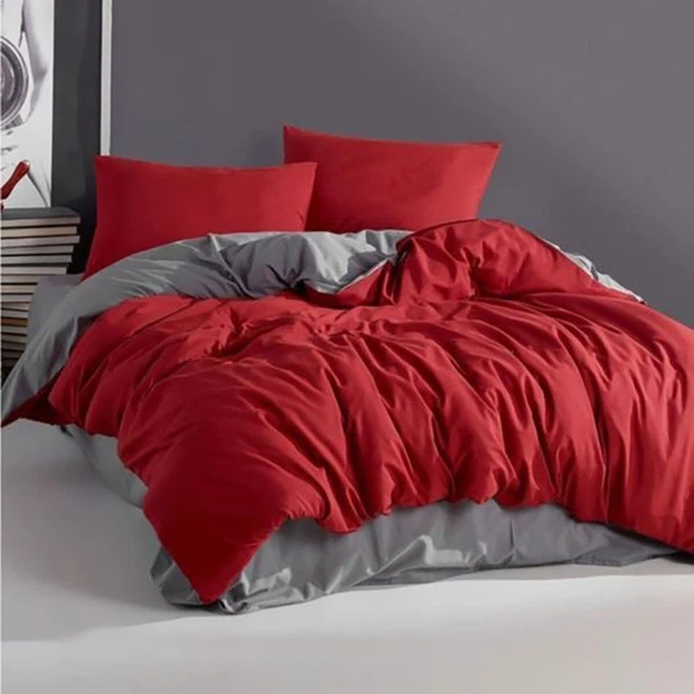 Постільна білизна MERISET ДУЕТ Червоний/Сірий Поплін Сімейна на резинці