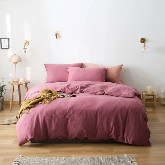 Постільна білизна MERISET Коралова однотонна Ранфорс Сімейний комплект на гумці 180х200х25 см