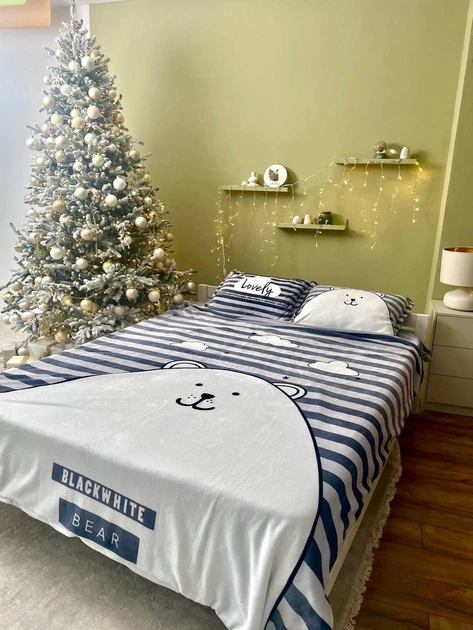 Постільна білизна Мікрофібра Сімейний 160х215 наволочка 70х70 2шт Синій з білим (П-al-plush4-bavovna-005-04)